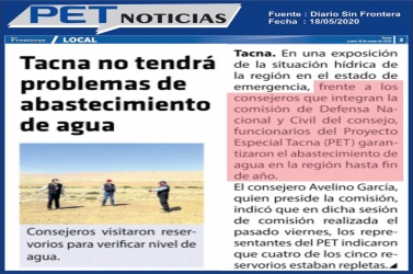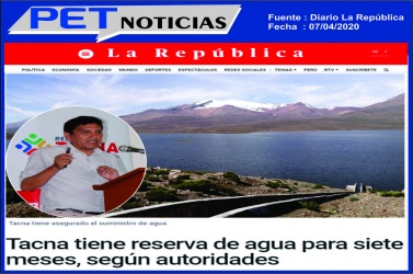 Leer másPET: Tacna tiene reserva de agua para siete meses.