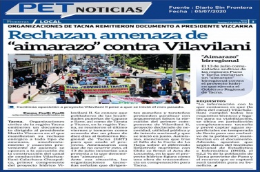 ORGANIZACIONES CIVILES DE TACNA, RECHAZAN ENÉRGICAMENTE A LAS AMENAZAS DE PUNO Y TARATA SOBRE LA EJECUCIÓN DEL PROYECTO VILACHAULLANI.
